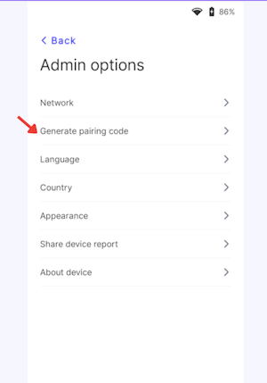 Tap Settings, then Generate Pairing Code