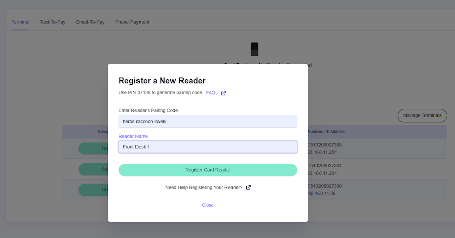 In the Reader Label field, name your terminal (example: Front Desk 1)