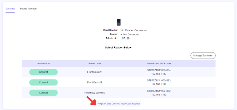 Click Register and Connect New Card Reader