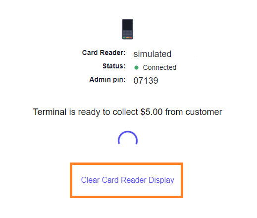 If you sent the wrong invoice amount to your card reader terminal or your patient or client has decided to pay using a different method, reset the card reader terminal by selecting "Clear Card Reader Display" on your dashboard.