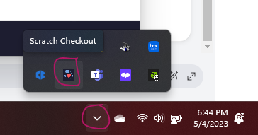 To fully shut down the desktop app: left-click on the small up arrow on the bottom-right corner of your desktop, then right-click on the Scratch icon. Click "Exit."