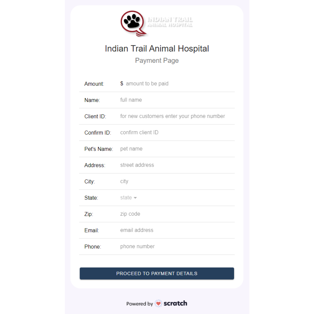 Scratch Web Payments are a convenient payment option that allows clients to pay a deposit or balance using a secure, practice-specific link. Clients can easily enter their information, and once payment is made, Scratch notifies your practice and the payment details are then clearly displayed for seamless recording within your PIMS.